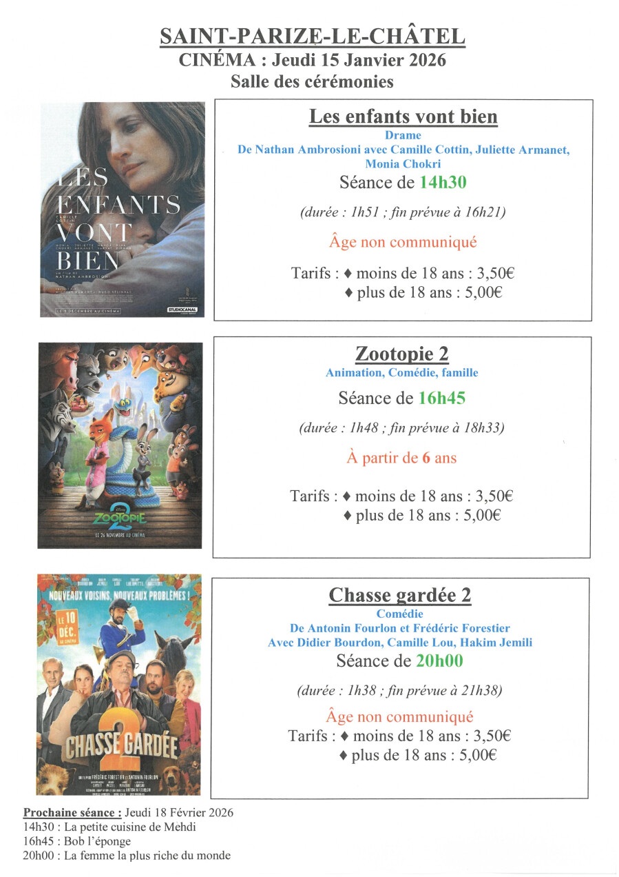 Cinéma itinérant - Votre programmation cinéma du 15 janvier 2026