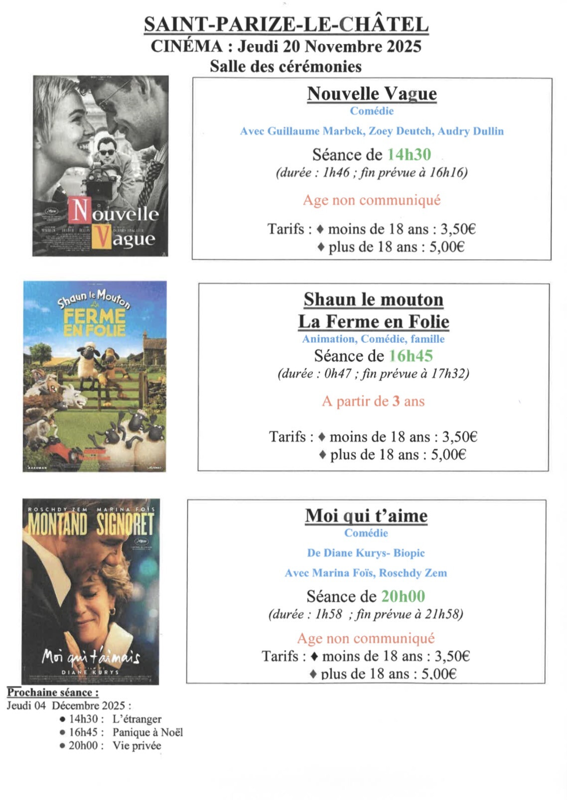Cinéma itinérant - Votre programmation cinéma du 20 novembre 2025