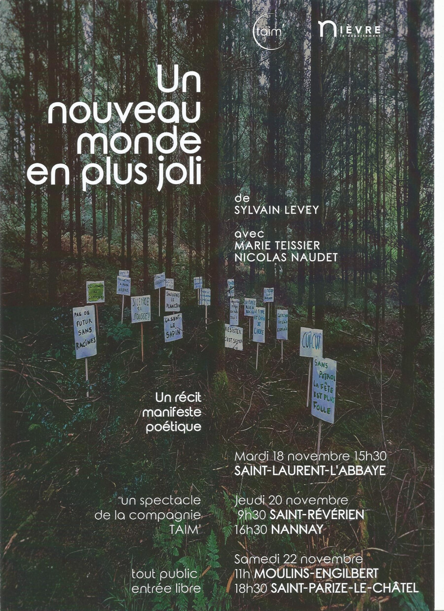 Samedi 22 novembre à 18h30, la bibliothèque accueille la compagnie Taim' pour un spectacle organisé par la Bibliothèque de la Nièvre sur l'écologie et la famille.